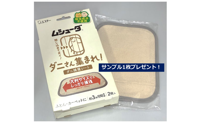 「ムシューダ ダニさん集まれ! ダニ捕獲シート」の試供品を1枚プレゼント。※通常の製品は2枚入
